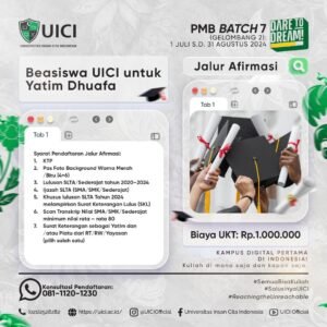 Universitas Insan Cita Indonesia (UICI) menggelar UICI Webinar Series Volume 11 bertajuk “Dakwah Digital” pada Minggu (1/2/2026) pukul 19.30 WIB. Webinar yang disiarkan secara langsung melalui kanal YouTube UICI Official ini menghadirkan tiga narasumber, yakni Ketua IMMI Ustaz H. Agus Sudono, Dr. Sarji, S.Pd., S.H., M.Pd., M.M., M.H., dan Rektor UICI Prof. Dr. Asep Saefuddin,…